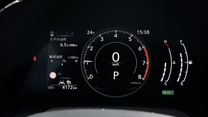 真皮包裹的電動調(diào)節(jié)方向盤手感極佳,皮質(zhì)相當細膩。多功能按鍵的分布也是清晰明了,觸手可及。儀表盤布局雖然也是較為傳統(tǒng)的設(shè)計樣式,但指針以及儀表表面的細節(jié)質(zhì)感處理得相當精致細膩,多功能信息顯示屏的氛圍照明還可以根據(jù)駕駛模式的不同,呈現(xiàn)不同照明效果。