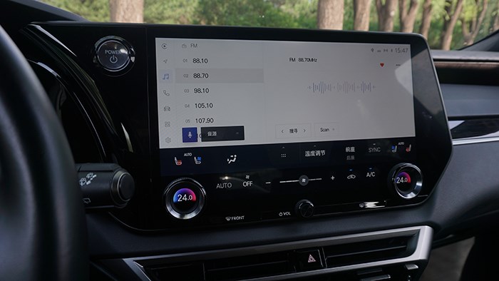 內(nèi)飾方面,全新RX350h質(zhì)感方面會更強一些,多種材質(zhì)的搭配細心、妥當,中控臺的液晶顯示屏明顯比上一代大了許多?;臼帜苡|及到的地方都采用了軟質(zhì)及皮質(zhì)材料包覆,在部分細節(jié)處還是使用了啞光銀的飾條進行點綴。