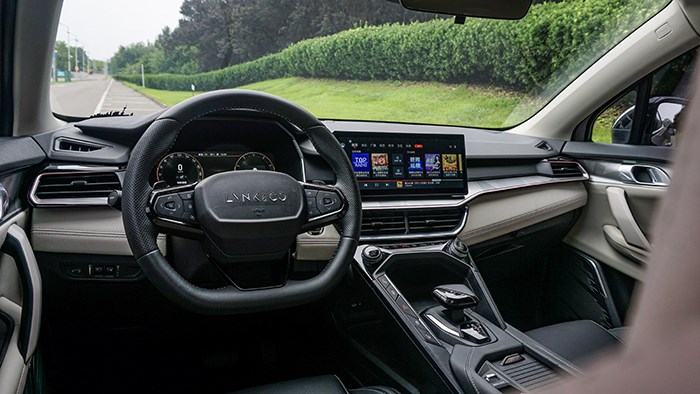 進入車內(nèi)第一眼就會被它懸浮式的中控屏吸引住目光,擋桿區(qū)域的按鍵也有了全新的布局,與領(lǐng)克車系之前使用的內(nèi)飾設(shè)計方案相比明顯年輕不少。