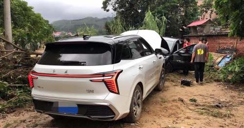 7月30日,泉州紅旗車主劉先生的車輛,被洪水沖走并被困于淤泥之中。接到救援電話后,泉州紅旗體驗中心工作人員冒著大雨立即奔赴現(xiàn)場拯救車輛,先是將車輛中貴重物品取出、整理,并第一時間交到車主手上,后又租用小型挖掘機,經(jīng)過4個多小時的努力,終于將車輛挖出并運離現(xiàn)場。