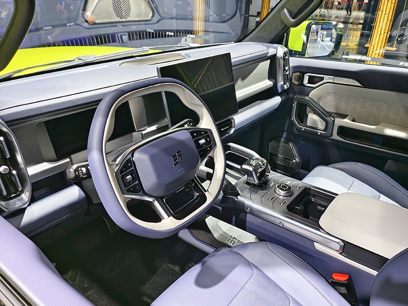 內(nèi)飾方面,新車內(nèi)飾采用撞色設(shè)計(jì),并搭載8155智能座艙。新車提供上下平底的三輻式方向盤,除了撞色設(shè)計(jì)還自帶機(jī)甲風(fēng),在A柱上還有扶手把手及攝像頭。另外大尺寸的中控屏也有提供,除此還配了小巧的換擋把手。據(jù)悉新車還有涉水感應(yīng)、拖車資質(zhì)、自適應(yīng)識(shí)別、自適應(yīng)調(diào)節(jié)主動(dòng)懸架等。