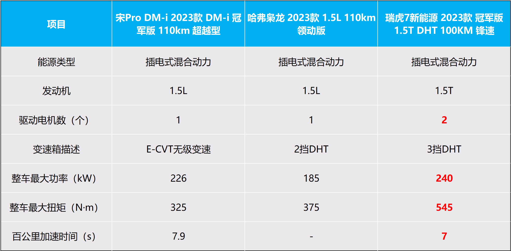 通過表格我們不難看出,瑞虎7新能源在三款車型中動力更具優(yōu)勢,整車最大功率可達(dá)240kW,最大扭矩更是高達(dá)545N·m,0-100km/h僅需7秒的澎湃動力,即便是在車輛高載荷的狀況下,也能輕松應(yīng)對十一出行中高速路況下的超車需求。