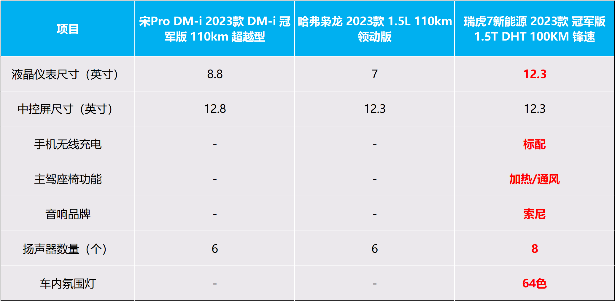 總體來說,相比宋Pro DM-i和哈弗梟龍,瑞虎7新能源在保證旅途舒適性和娛樂性的配置方面更具優(yōu)勢。能夠在漫長的旅途中減輕駕駛者的負(fù)擔(dān),更能滿足車內(nèi)每位乘員的娛樂體驗,讓旅途時光也能創(chuàng)造出十一出游的高光時刻。