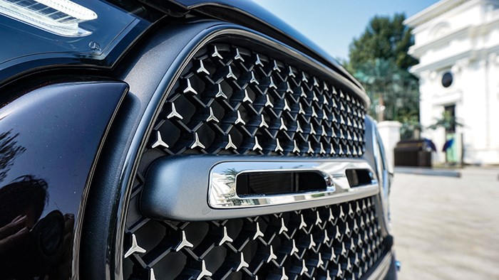 前臉采用了大尺寸的進(jìn)氣格柵和犀利的LED大燈組合,展現(xiàn)出強(qiáng)烈的力量感??梢钥吹饺驴钍降闹芯W(wǎng)上遍布奔馳的星輝標(biāo)致,很有辨識度。