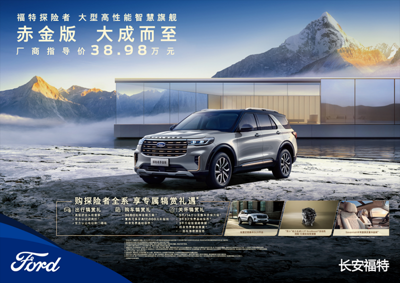 近日,長安福特探險者赤金版上市,售價38.98萬。