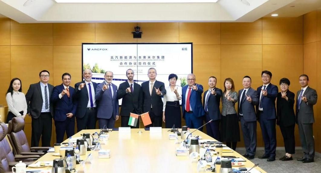 10月9日,北京藍谷極狐汽車科技有限公司(以下簡稱“極狐汽車”)與來自阿聯(lián)酋的本奧米爾控股集團有限公司(英文:Bin Omeir Holding Group以下簡稱“本奧米爾集團”)簽署合作協(xié)議,雙方計劃聯(lián)手開拓阿聯(lián)酋和沙特兩大中東市場,極狐汽車車型將成為此次出海的主力產(chǎn)品。北汽集團副總經(jīng)理、北汽新能源董事長劉宇,北汽新能源公司總經(jīng)理代康偉、本奧米爾集團副主席、本奧米爾汽車集團董事長奧米爾·本·穆罕默德·本·奧米爾·優(yōu)素福·穆海里先生(Omeir Bin Mohamed Bin Omeir Bin Yousef Almheiri)、Autostrad汽車租賃公司總經(jīng)理卡魯內(nèi)什·艾莉亞(英文名:Karunesh Arya)共同出席見證簽約儀式,由常務(wù)副總經(jīng)理張國富和本奧米爾集團董事加布里埃爾(英文名:Gabriel Arzoumanian)分別代表北汽新能源和本奧米爾集團簽約。