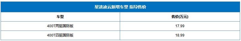 10月10日,星途凌云新增2款車(chē)型上市,售價(jià)區(qū)間17.99-18.99萬(wàn)。