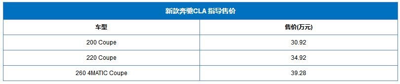 新款奔馳CLA正式上市,共推出3款車型,售價(jià)區(qū)間為30.92-39.28萬。