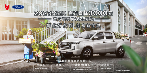 在全民創(chuàng)富時代,2023款寶典同樣優(yōu)惠多多,驚喜滿滿。11月1日-30日,2023款寶典官方直降3000元,用戶購車還可疊加享受2000元現(xiàn)金優(yōu)惠、2年免息、任意皮卡增購享3000元/任意車型置換享3000元(二選一),發(fā)動機(jī)終身質(zhì)保四重好禮,以更低投入創(chuàng)造精彩生活。