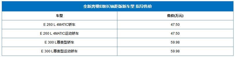 全新奔馳E級(jí)長(zhǎng)軸距版新增車型上市 售價(jià)47.50-59.98萬(wàn)