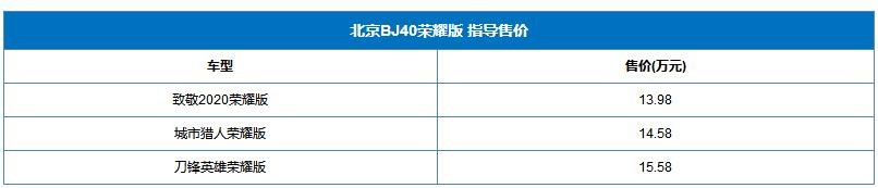 北京BJ40榮耀版正式上市 售價(jià)為13.98-15.58萬(wàn)