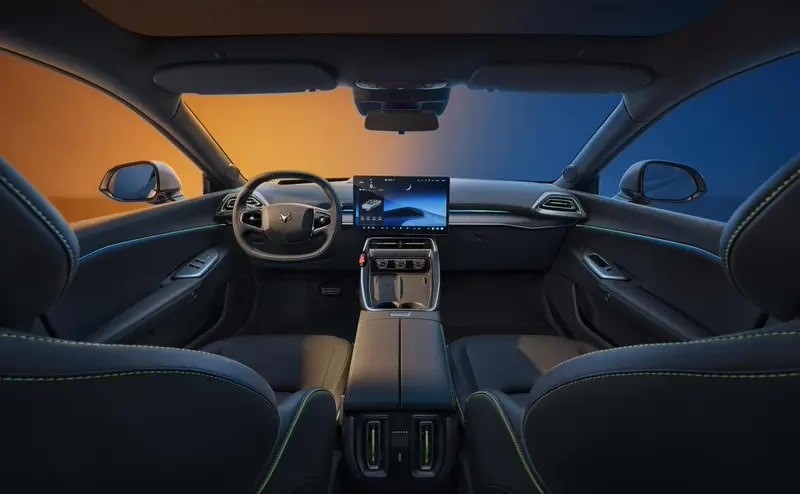 內(nèi)飾方面,新車采用大尺寸中控屏搭配平底雙輻式方向盤。除此還提供了車內(nèi)氛圍燈、一體式運(yùn)動(dòng)座椅、可視化水晶香氛等。新車采用純黑色內(nèi)飾配色,搭配熒光綠車身縫線、飾件、安全帶,除此還有霧光棕、輕盈灰兩種內(nèi)飾配色。
