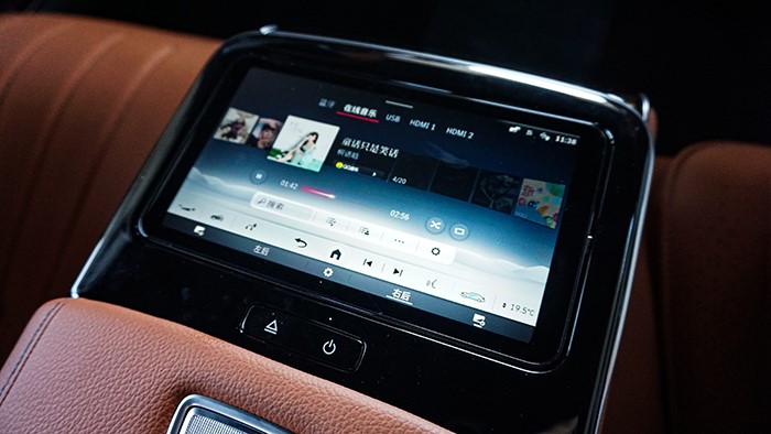 座艙空間寬敞舒適,提供了極致的乘坐體驗。后車窗還有電動遮陽簾以及車內(nèi)香氛,后排還提供兩個獨立的顯示屏,并在B柱上有空調(diào)出風口,車內(nèi)的豪華感不言而喻。