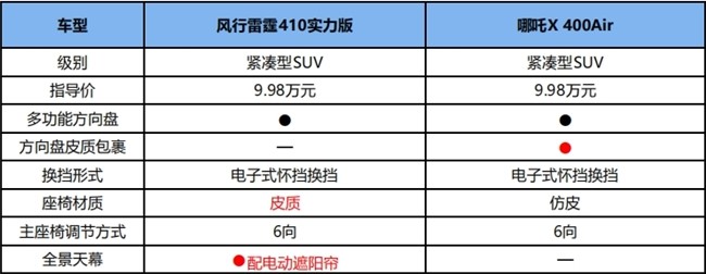 不難看出,在內飾上,風行雷霆410實力版的用料更足,帶來了比哪吒X 400Air更強的高級感。
