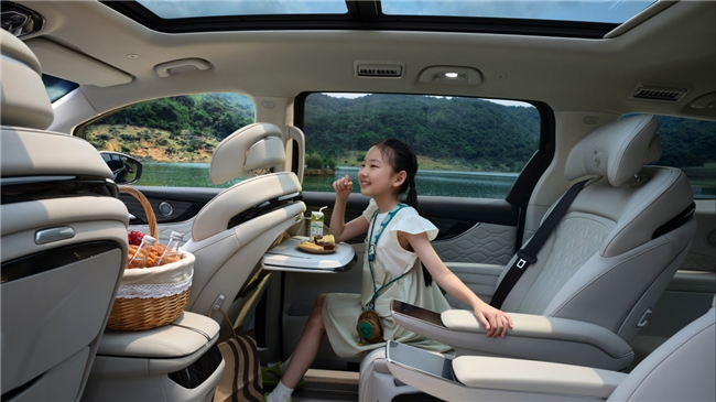 隨著消費升級,新中產(chǎn)用戶更希望MPV在內(nèi)在豪華感方面能夠達到主流水準,滿足家人五一節(jié)假日出游的舒適體驗。作為東風風行全新新能源序列的首款豪華新能源旗艦MPV,風行星海V9為新中產(chǎn)大家庭造就頭等艙式的VIP移動空間。12向可調(diào)豪華航空座椅,支持電動調(diào)節(jié)、腿托、加熱、按摩等功能,搭配貼心小桌板,方便二排家人看書、享受美食,長途久坐也不累。第三排座椅空間媲美D級豪華轎車后排,配合210mm同級二排超寬中央通道,二三排通行更無阻,成人、兒童均可輕松在車內(nèi)穿行。同級唯一的三排座椅下沉設(shè)計,后備箱空間達593L,7人小團隊出游在保證充裕乘坐空間的同時,還能裝下7個20寸行李箱和7個背包,輕松裝載全家出游所需。值得一提的是,活動期間預(yù)售下訂風行星海V9,至高可享10000元的國家補貼,讓品質(zhì)出行生活暢享無憂。