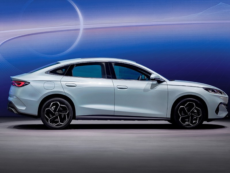 外觀方面,新車采用全新理念,兩側(cè)大燈組沒有沿用海豹造型,而是換裝全新樣式,搭配雙L日行燈。前包圍還有通風(fēng)口設(shè)計(jì),搭配大面積黑色飾件形成微笑前臉。車側(cè)提供流行的半隱藏式門把手設(shè)計(jì),搭配五輻式梅花輪轂。車身尺寸方面,新車長寬高分別為4830*1875*1495mm,軸距2790mm,尺寸和即將到來的秦L高度相差無幾。
