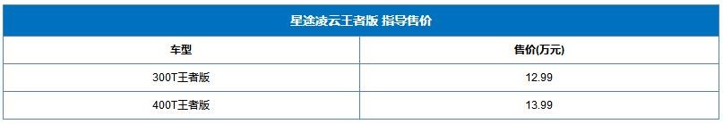 近日,星途凌云王者版上市,共推出2款車型,售價區(qū)間為12.99-13.99萬。
