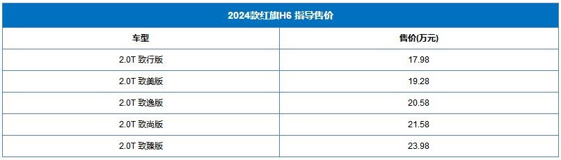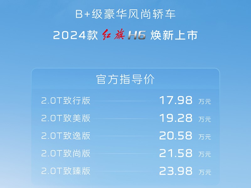 2024款紅旗H6上市 售價為17.98-23.98萬