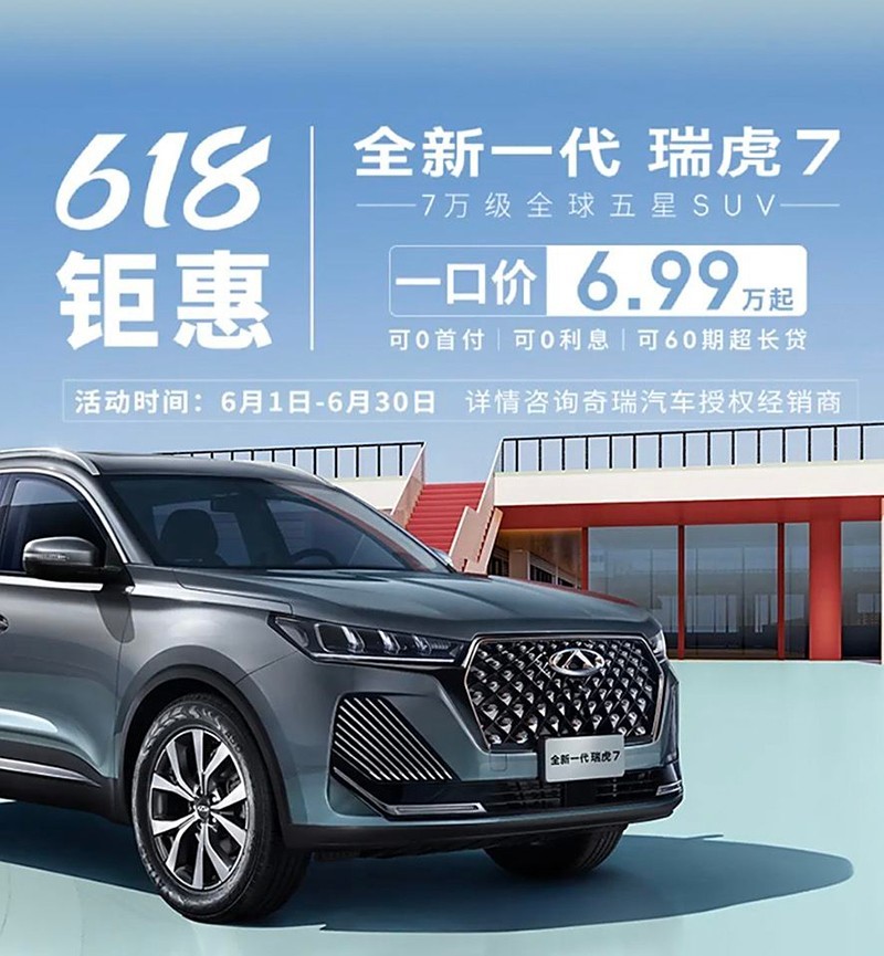 近日,奇瑞瑞虎7開啟官方優(yōu)惠活動,優(yōu)惠后售價6.99萬起。該活動截止至6月底。