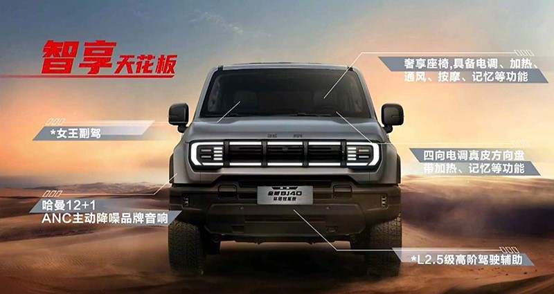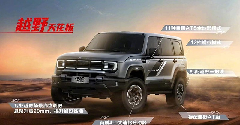 動力方面,新車搭載2.0T發(fā)動機,最大功率180W,峰值扭矩395N·m。傳動匹配8AT變速箱。新車將配備4.0大速比分動器、三把鎖、11種自研ATS全地形模式及12擋蠕行模式。