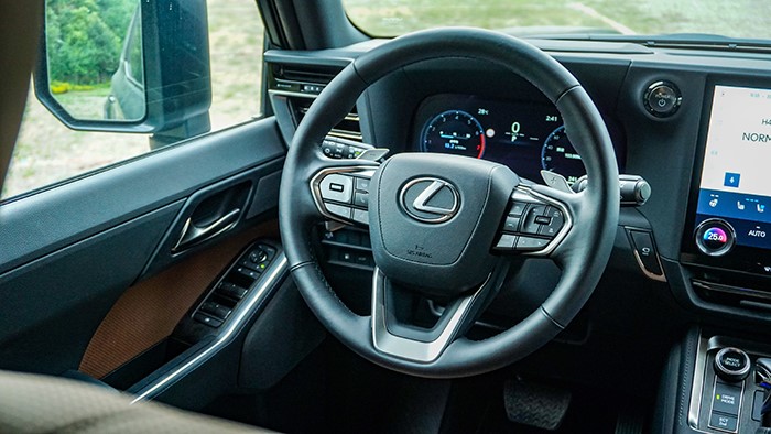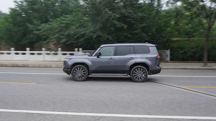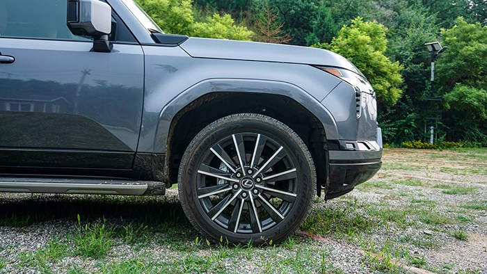 GX550h凌峰版使用了22寸輪轂,輪胎規(guī)格為265/50 R22,品牌為鄧祿普,作為一臺(tái)硬派越野車實(shí)屬不小。大尺寸的車輪增加了整體的視覺(jué)沖擊力,同時(shí)也提升了車輛的運(yùn)動(dòng)感和豪華感。為了上車方便,腳踏板也是原廠配置。