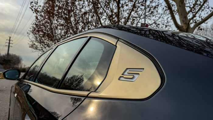 寶馬5系在C柱上鑲嵌了數(shù)字5的徽章,辨識(shí)度非常高,并且這個(gè)數(shù)字在夜晚是可以點(diǎn)亮的。翼子板處還鑲嵌了經(jīng)典的M運(yùn)動(dòng)徽章。