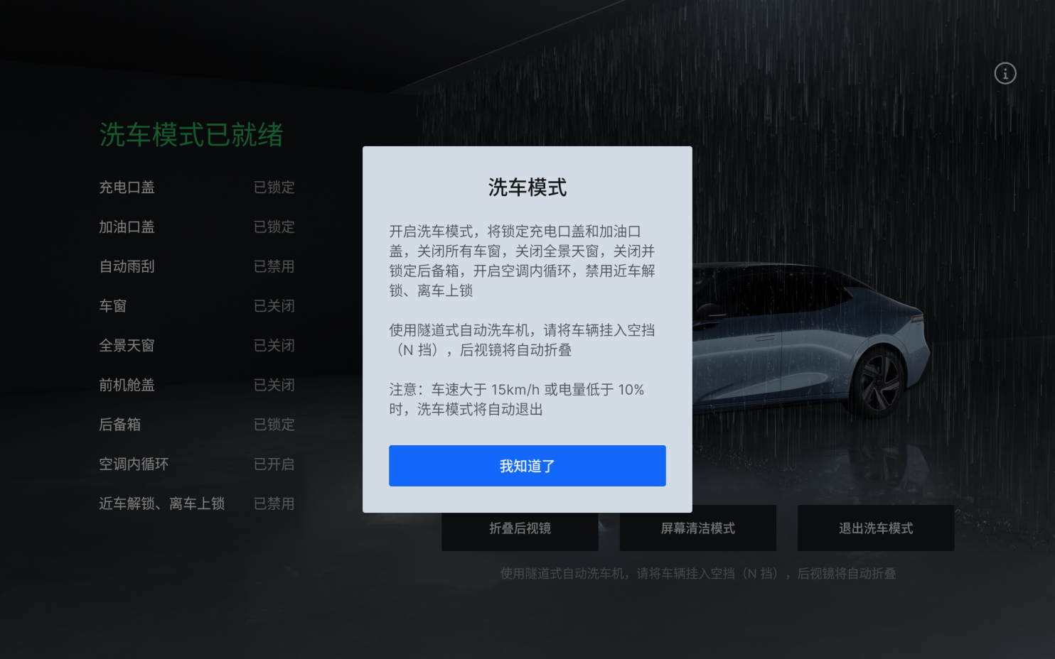 新增STR超電快啟功能,車機解鎖即亮屏,告別等待,即可駕駛。用戶呼聲特別高的洗車模式在1.7.0版本OTA中也得以實現(xiàn),洗車時可一鍵關閉眾多部件,還能保護車內(nèi)空氣與觀察周邊。新增圖庫隱私模式讓個人隱私得到保障,識別到副駕駛位或后排有乘客時,將自動隱藏USB相冊選項,確保個人圖片與視頻不被他人窺探。