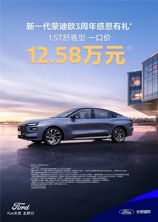 不玩花招不套路!蒙迪歐1.5T舒雅型限時(shí)一口價(jià)12.58萬(wàn)!