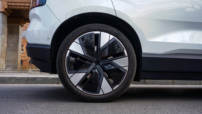 沃爾EX30配備設計獨特的輪轂,車輛選配了245/40 R20的大尺寸輪胎,造型時尚,進一步提升了車輛的視覺沖擊力。輪轂設計突出個性,為整車外觀增添了一份獨特的魅力。