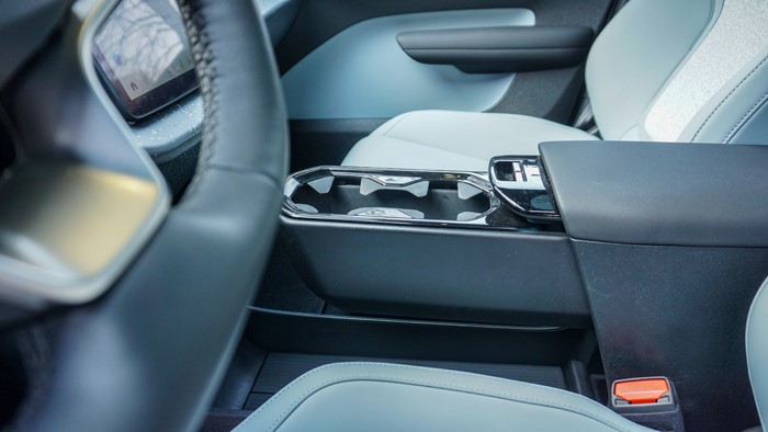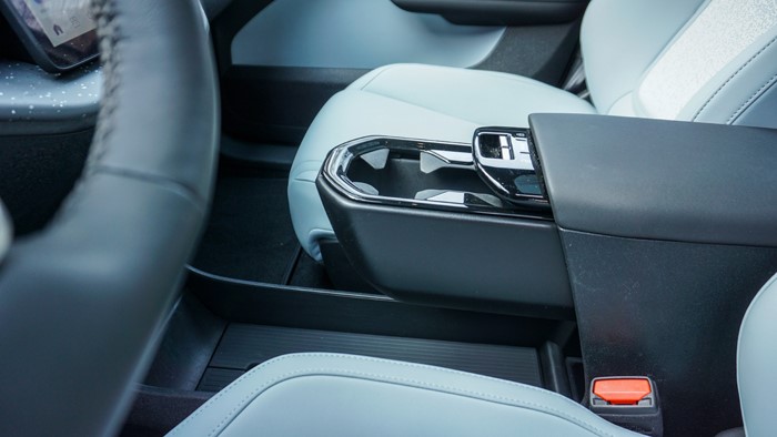 亮點設計:手套箱并不在副駕乘客座椅前方,而是位于12.3英寸觸摸屏的正下方,并只能通過液晶屏來打開,這同樣創(chuàng)造了副駕駛前方更多腿部空間。