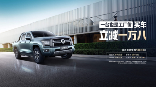 金剛炮8AT不僅有硬核實(shí)力,更有誠(chéng)意滿滿的價(jià)格,售價(jià)9.98萬元起,用戶花手動(dòng)擋的錢就能買到自動(dòng)擋皮卡。同時(shí),金剛炮終端優(yōu)惠力度空前,一臺(tái)也是工廠價(jià),買車立減一萬八,性價(jià)比直接拉滿。即日起至4月30日,購(gòu)買金剛炮限時(shí)綜合鉅惠至高18000元,可享6000元現(xiàn)金禮、2000元老友禮、5000元置換禮,以及至高7萬2年0息等諸多禮遇……福利多多,相比同級(jí)車型簡(jiǎn)直不要太劃算。