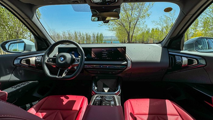 2025款寶馬X3的內(nèi)飾設(shè)計充分體現(xiàn)了寶馬對豪華與科技的追求,營造出一個既舒適又現(xiàn)代的駕駛空間。本車使用了雙調(diào)烈焰紅的配色,黑紅相間,很有運(yùn)動氣息。