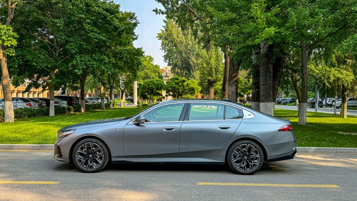 車身側(cè)面設(shè)計簡潔大氣,線條流暢自然。優(yōu)雅的車頂線條與動感的腰線相得益彰,展現(xiàn)出寶馬5系獨特的風(fēng)采。