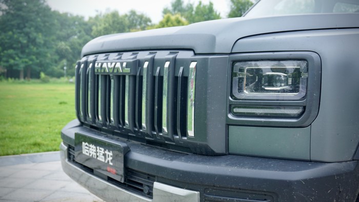 前臉部分,寬大的直瀑式進氣格柵采用了鍍鉻裝飾點綴,中央的鍍鉻哈弗標志顯得尤為醒目,搭配銳利的方形LED大燈,整體造型顯得更加霸氣且富有科技感。
