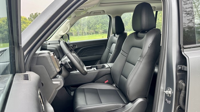 座椅方面,哈弗猛龍?zhí)峁┝藢挸ǖ目臻g,采用了優(yōu)質(zhì)的座椅材料,具備良好的支撐性與舒適性,適合長途旅行。這臺Pro版本主副駕駛座椅均帶加熱功能,Ultra版則增加了記憶和通風(fēng)功能