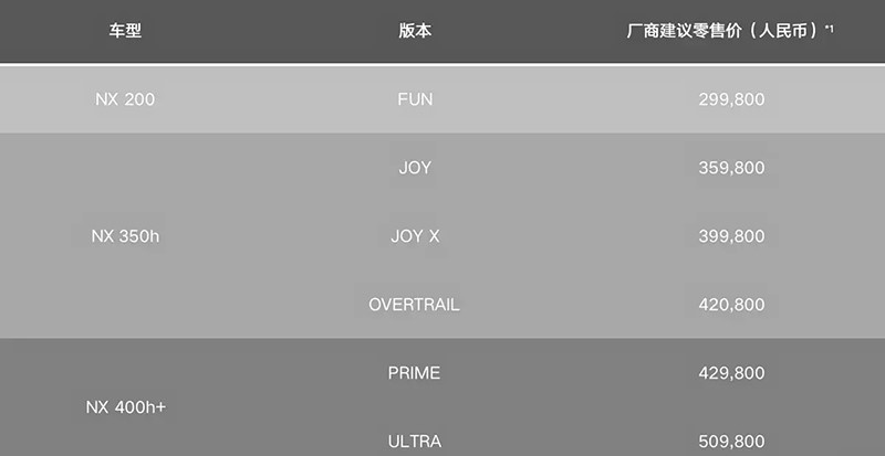 新款雷克薩斯NX正式上市 售價為29.98-50.98萬