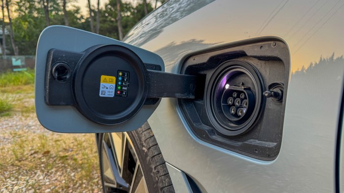 車輛側(cè)面左前翼子板處增加了充電接口,同時,這臺頂配寶馬i3用的是19英寸半封閉式五幅輪輞,屬于新能源車的調(diào)性,并且也能對續(xù)航有一點幫助。