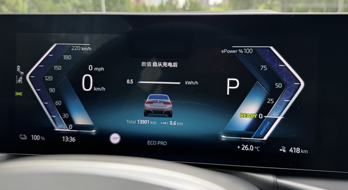 寶馬i3 eDrive 40 L 曜夜運動套裝擁有250kW的電動機總功率,最大馬力340Ps,總扭矩達到了430Nm,采用單電機后置。CLTC純電續(xù)航里程為625km??斐錇?.53小時,慢充為12.25小時。在幾天的城市與高速路駕駛中,續(xù)航數(shù)值與官方給出的數(shù)據(jù)基本無明細差異,續(xù)航并沒有進行虛標。