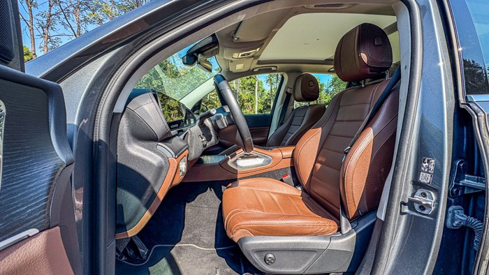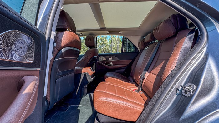 奔馳GLE450 4MATIC的座艙空間相對(duì)來(lái)說(shuō)還是很寬敞的,寬大的運(yùn)動(dòng)座椅由高級(jí)真皮包覆,粗壯的側(cè)向支撐很有視覺(jué)沖擊力,座椅的舒適度性極好帶有電加熱功能。