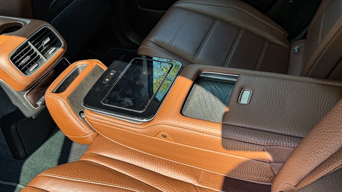 車(chē)輛的后排地板較為平整,后排除獨(dú)立空調(diào)外,功能鍵也進(jìn)一步優(yōu)化,提供兩個(gè)Type-C接口,方便后排乘客使用。可獨(dú)立取出的液晶電腦可方便后排乘客完成部分車(chē)輛功能的操控。