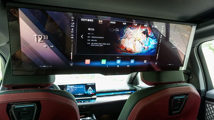 這臺(tái)寶馬i5 40L的“重頭戲”:后排巨幕顯示屏的配置可以說是同級別第一,為后排乘客增加了更多的樂趣。用手機(jī)注冊“咪咕”賬號,登錄連接藍(lán)牙手柄,就可以在車內(nèi)玩游戲了。