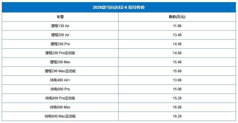 長安馬自達2026款馬自達EZ-6上市 售價11.98-16.28萬