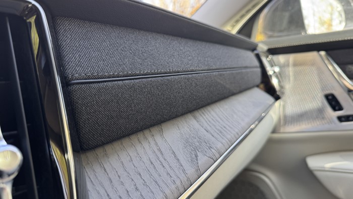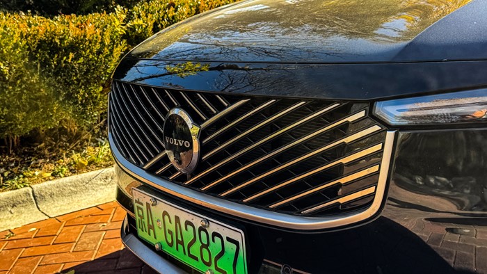 雷神之錘的大燈是沃爾沃家族的經(jīng)典設計語言,中網(wǎng)格柵采用全新交匯的樣式,辨識度非常高。中網(wǎng)邊框采用極窄的風格,兩端與車頭大燈交匯,扁平化風格很明顯,也使車頭看上去更寬大了。