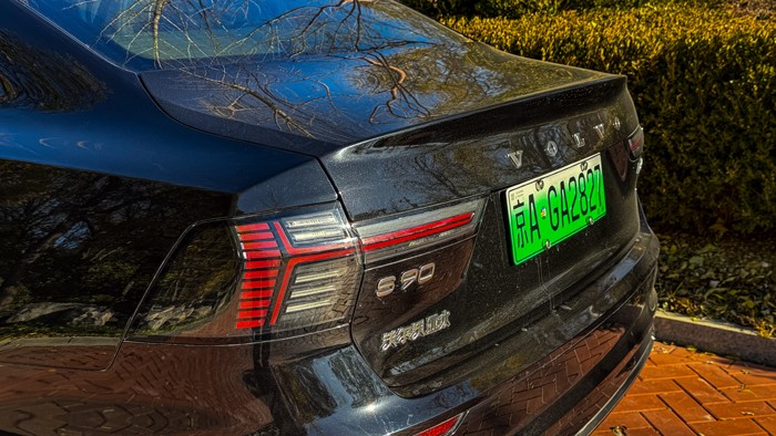 維京之斧造型的尾燈在夜晚很容易認出這是一臺沃爾沃S90。再說安全,沃爾沃S90的安全確實非同凡響:首先說車身安全方面。它采用比競爭對手更大的硼鋼材料,面積達到37.6%,這是以硼為主要合金化元素的鋼 ,其硬度可達到1,300~1,500Mpa,是一般車身鋼材硬度的4~5倍。在同等強度下,質(zhì)量要輕15%。左前翼子板上的充電口證明這是臺插混車型。