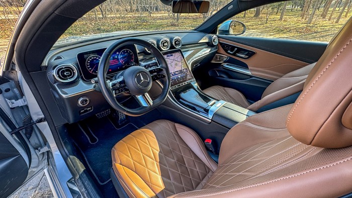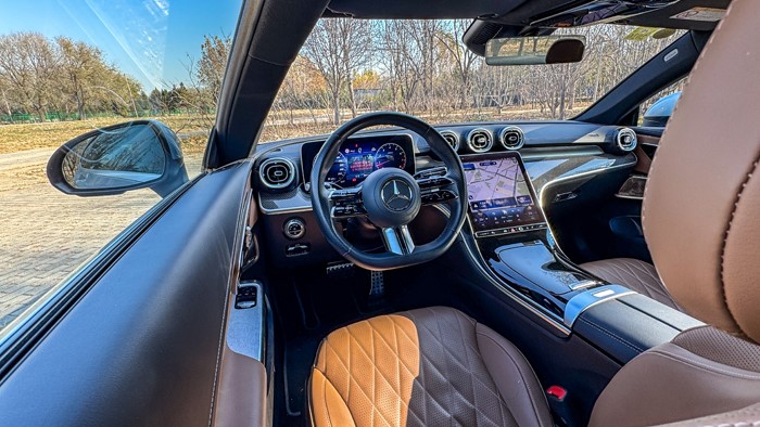 拉開車門,除了那跑車范十足的無框車窗,更引人注目的是奔馳車型最為突出的豪華優(yōu)勢(shì):這臺(tái)棕黑配色的內(nèi)飾配色營(yíng)造了清新高雅的氛圍。不得不承認(rèn)奔馳作為一個(gè)百年豪華品牌,在營(yíng)造車廂氛圍方面的造詣幾乎無車能敵。