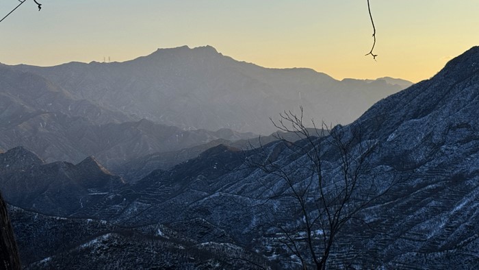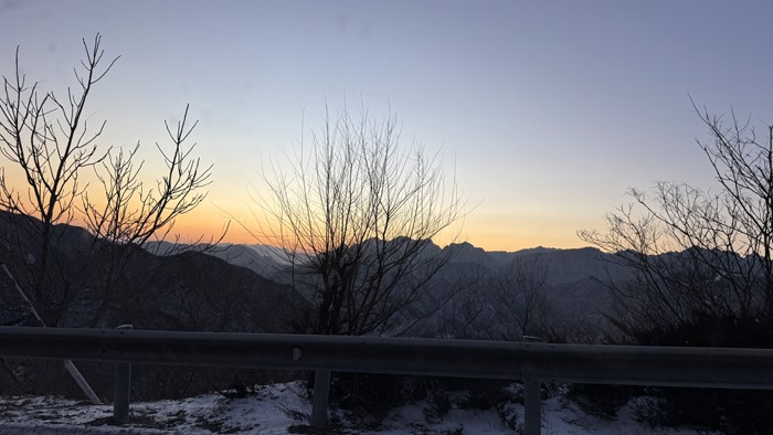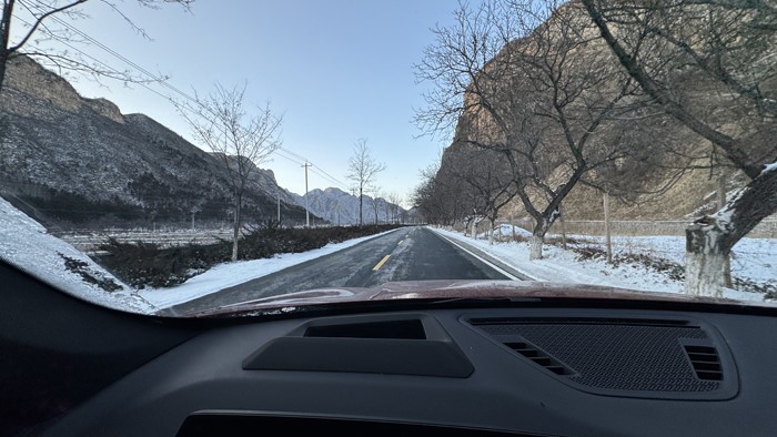 遇到好的風(fēng)景一定下車看看,冬天下過雪的山景也很美。