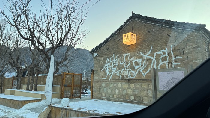 不到2個(gè)小時(shí)的車程,我們來到了今天的目的地,懷來鎮(zhèn)邊古城。古城門口還有一家名叫鎮(zhèn)京的咖啡館,游玩過后可以喝杯熱咖啡,舒坦。